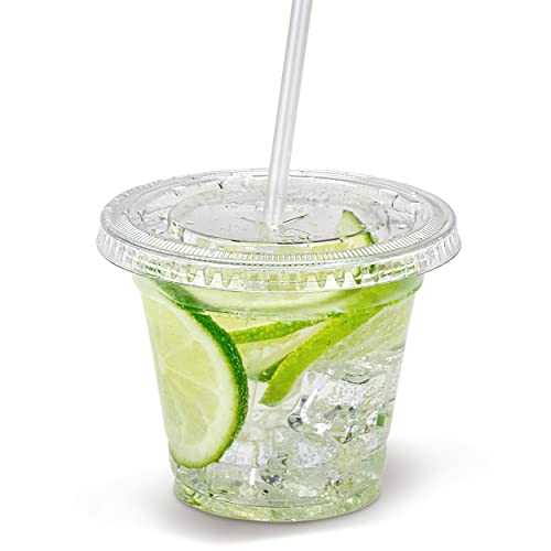 [100個パック] 平らな蓋付き9オンスの透明プラスチックカップ、使い捨てアイスコーヒーカップ、BPAフリー子供用カップ、パーティー用クリスタルレモネードカップ、スムージー、冷たい飲み物、ジュース、ミルクシェイク、バブルボバ、紅茶 Fit Meal Prep [100 Pack]