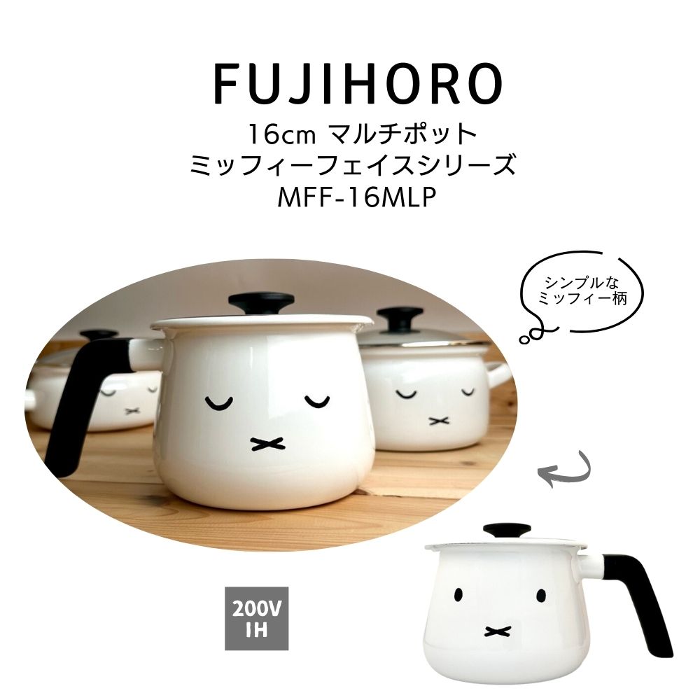 【レビュー特典】 富士ホーロー 〔 ミッフィーフェイスシリーズ マルチポット16cm 〕 片手鍋 琺瑯鍋 保存 冷蔵庫 調理 ガス IH ホワイト シンプル マルチポットミッフィー ブルーナ うさこちゃん ふた付 16cm シンプル MFF-16MLP ギフト プレゼント