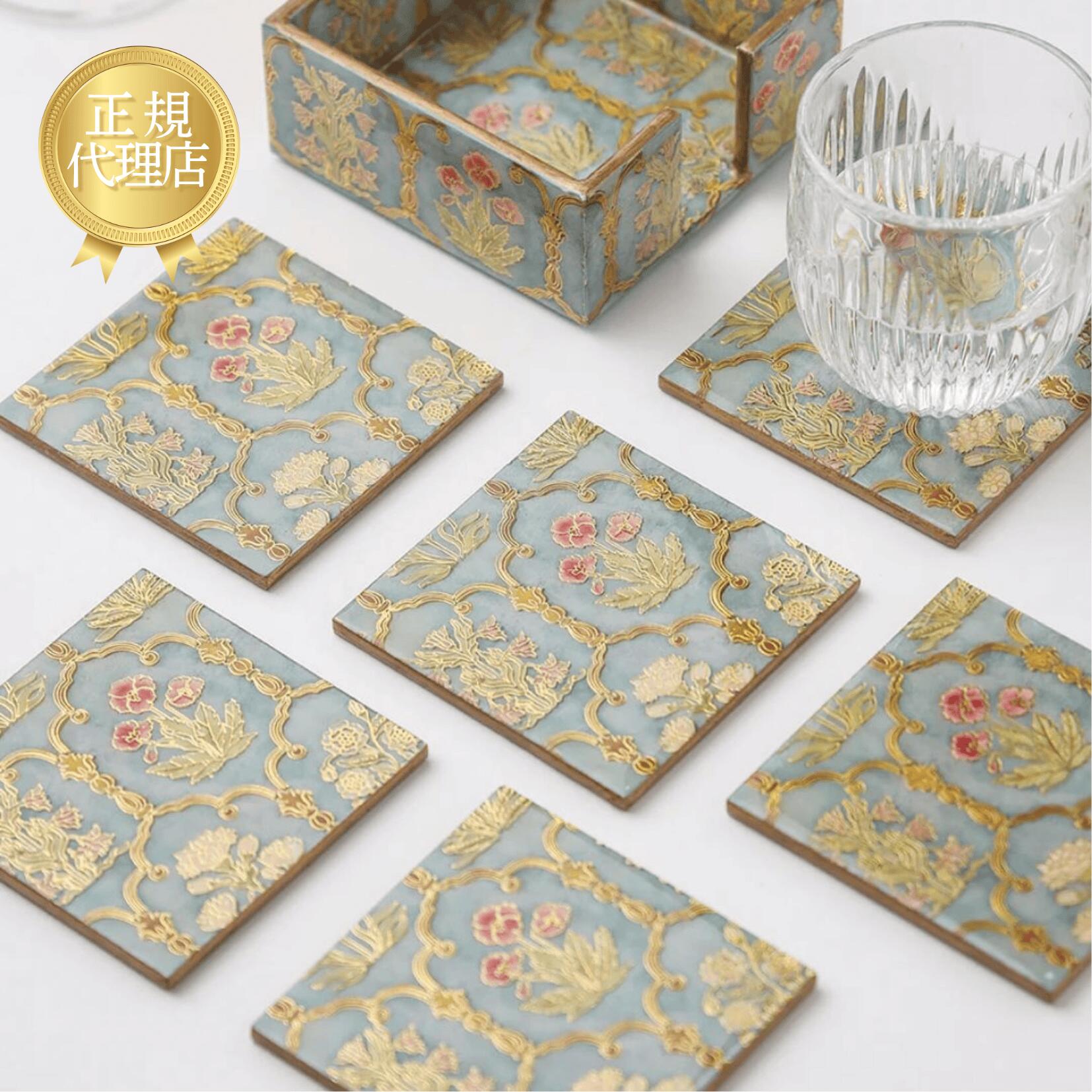 マハラジャコースターセット【ベビーブルー】 【正規代理店】インド ラグジュアリー ホームインテリア コースター ギフト プレゼント フラワー ゴールド おしゃれ