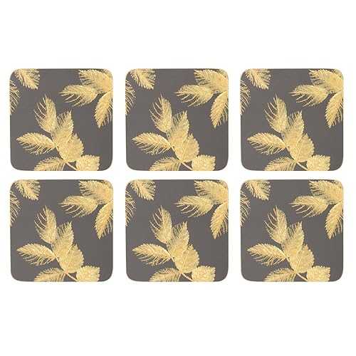 Sara Miller London for Pimpernel Etched Leaves Coasters Set of 6 Dark Grey