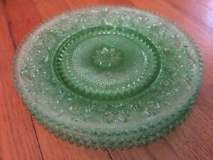 【送料無料】キッチン用品・食器・調理器具・陶器 ヴィンテージダンカンミラーグリーンプレスガラスサンドイッチパターンランチョンプレート4 Vintage Duncan Miller Green Pressed Glass Sandwich Pattern 8 Luncheon Plates