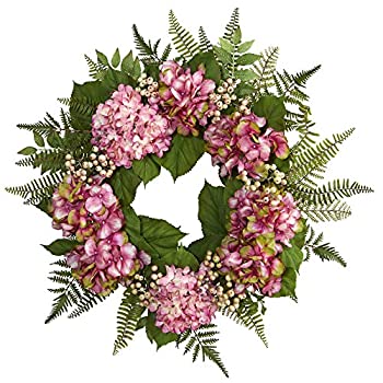 【中古】【輸入品・未使用】Nearly Natural 24インチ Hydrangea ベリーリース ピンク