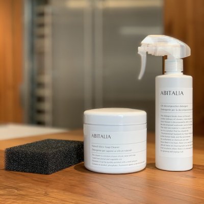 ※こちらの商品はお届けまでに1〜3営業日前後(土日祝休日)かかります。★キッチン取付け隊スタッフイチオシ商品★〜セット内容〜1万能クレンザー珪華⽯にヤシ油⽯鹸を配合した自然派の多用途クレンザーです。⽯油系原料、合成界⾯活性剤、リン酸塩、蛍光剤、着⾊剤、脱⾊剤、⾹料は不使用ですので、手肌や環境に優しく、毎日安心してご使用頂けます。珪華⽯は研磨剤としては柔らかく粒⼦が細かい為、対象物に傷をつけにくく、汚れだけを綺麗に取り去ります。幅広い用途に使える多用途タイプですので、様々な洗剤を買いそろえる必要がありません。Euromobilのキッチンに置いていても悪目⽴ちしない、シンプルなパッケージデザインです。■用途食器、まな板、ステンレス製品、換気扇、電化製品、ホーロー製品等の油汚れや⻩ばみ、⿊ずみの除去⽔栓やシンク、浴槽やガラス製品の⽔垢、曇りの除去■内容量400g2ナノレベル分解スプレー油汚れ専用のクリーナーです。炭素結合分断技術の応用により、一般的な洗浄剤のように対象物から油分を剥がすのではなく、ナノレベルで分解します。ベタベタの油汚れも、スッキリ綺麗に除去できます。天然鉱⽯から抽出した特殊ミネラルを主原料としており、界⾯活性剤、化学薬品は不使用ですので、手肌や環境にやさしく、毎日安心してご使用頂けます。キッチンに置いていても悪目⽴ちしない、シンプルなパッケージデザインです。■用途換気扇、オーブンレンジ、グリル、タイル、ステンレス製品等のしつこい油汚れ分解除去■内容量300ml3スポンジ泡⽴ち、泡切れ、⽔切れがよいキッチンスポンジです。丈夫でへたりにくく、とても⻑持ちします。シンプルな形状とモノトーンカラーで、キッチンデザインの邪魔になりません。※別途送料+800円(税抜)がかかります。※北海道・沖縄・離島の場合は追加送料が発生いたしますのでご了承ください。※こちらはABITALIAの商品です。