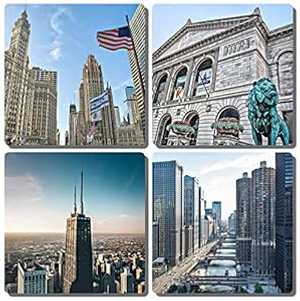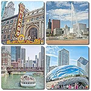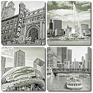 EXIT82ART Life in Pictures. EXIT82ART - Stone Drink Coasters (Set of 4). Iconic Chicago. Tumbled Stone, Cork-Backed.