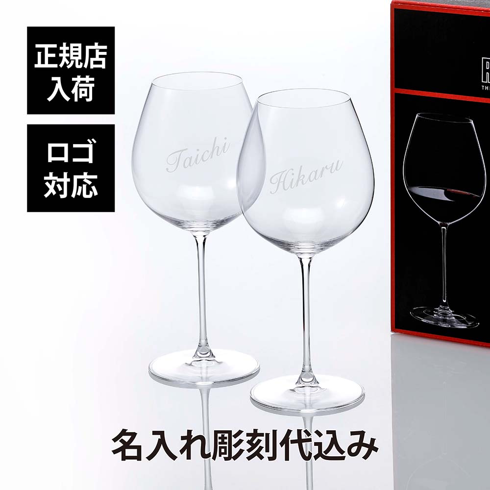 ●彫刻する内容はご注文フォームの備考欄にご入力ください。 ●通常ご注文いただいてから14日程度お時間いただきますが、お急ぎの際は当店までご相談ください。 ●実店舗・オンラインショップ等で同時に販売しているため、ご注文後に在庫がない場合も稀にございます。ご了承ください。 ●その他ご不明な点があればお気軽にお問合せください。 定休日:火曜日 お電話受付時間:10時から19時(土日祝は18時まで)RIEDEL / リーデルのシリーズ オールドワールド・ピノ・ノワール ペアにお名前など彫刻いたします。 シリーズは、ハンドメイドのような魅力とマシンメイドにしかできない精密さを兼ね備えています。 オールドワールド・ピノ・ノワールは丸く大きなボウル形状が特徴。 広く十分に香りを楽しめるこのグラスは複雑な香りの赤ワインに最適なワイングラスです。 RIEDEL 265年以上の歴史を誇るワイングラスのオーストリアの老舗ブランド「リーデル」。 ワイン造り手の想いまでも忠実に再現するグラスとし、 ワイン生産者や愛好家の方々から絶大な信頼が寄せられています。 ●サイズ:高さ23.5cm ●容量 :705ml ●個数 :2客 ●生産国:ドイツ ●製法:マシンメイド ●素材: クリスタル ●ラッピング無料 正規ボックスとリボンでお包みし、紙袋と一緒にお届けいたします。 ※のし希望の場合は箱を包装紙でお包みし、のしを付けてお届けします。 ●彫刻する位置 【正面】30文字程度まで 【底面】25文字程度まで いずれか一ヶ所に彫刻します 彫刻する内容はご注文フォームの備考欄にご入力ください。 【ロゴ・イラストも彫刻対応可能です】 ロゴやイラストデータをご用意いただければ、彫刻対応いたします。 彫刻するためにデータ加工費が2,000円〜(税抜)かかります。 ※ご注文前にデータを当店で確認させていただき、加工費についてお見積もりをすることも可能です。 ※加工費はデータ1件に対してかかります。同じ内容を複数個彫刻ご希望の場合、個数分費用がかかるものではありません。 ※詳細は、ご注文前にお気軽に当店までお問い合わせください。 文字数が多い場合は、正面・底の両面彫りをおすすめします。 両面彫刻をご希望の場合は 『ペア メッセージ両面彫刻 』(50文字まで) をお買い物かごに入れていただき、ご希望メッセージをご注文フォームの備考欄にご記入ください。 【ご注意ください】 ※商品画像の色はお使いのパソコンモニター・スマートフォンのカラーバランス等により、実物と若干異なる場合があります。 できる限り実物に近くなるよう努めていますが、上記の点ご考慮いただきご注文をお願い致します。 彫刻するメッセージ・書体はこちらからお選びください。 ■書体一覧 ■メッセージ一覧