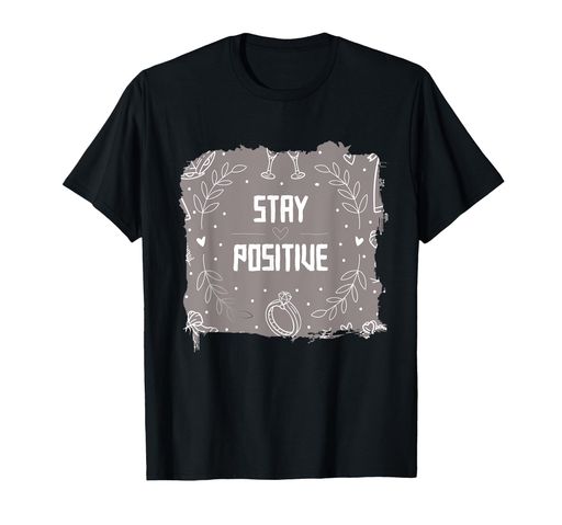 WeddingRingFlowerCakePatternStayPositiveCoupleGiftsTシャツ