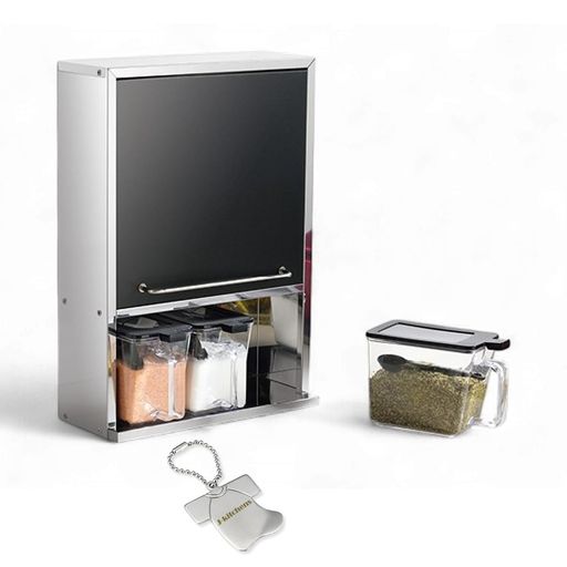 素材/本体:18-0ステンレス、ハンドル:18-8ステンレス、調味料ケース(本体):ポリスチレン、調味料ケース(蓋)・スプーン:ポリプロピレン、ブラック・ホワイト/扉:18-0(ポリエステル樹脂粉体焼付塗装) 製品サイズ(重量)/スリム/本体:約280x120x400mm(約1600g) 調味料ケース(本体:3杯):約80x155x110mm(約315g・800ml)