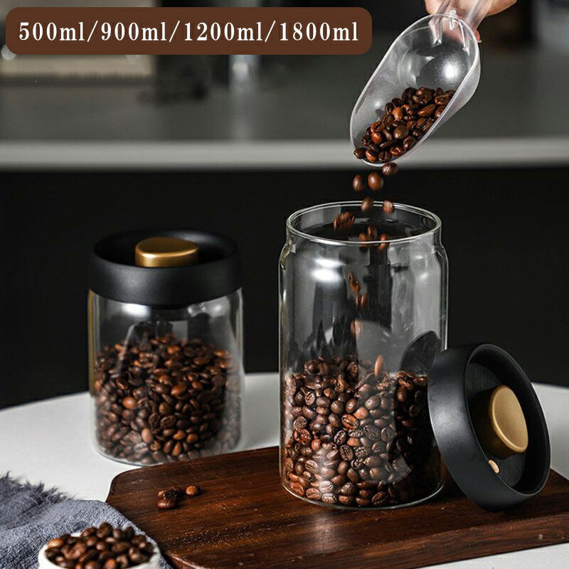 【半額!スーパーSALE】真空 保存容器 コーヒー豆収納 豆収納 ガラス 4サイズ コーヒー豆 乾物 ペットフード 梅雨対策 漬物 密封 ストッカー フードキーパー 耐熱 耐冷 食洗機対応 調味料容器 真空容器 フードストッカー 500ml 900ml 1200ml