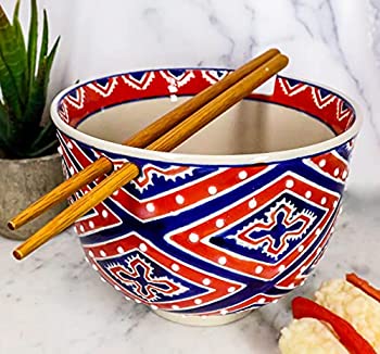 【中古】【輸入品・未使用】Japanese Design Diamond Motif Contrast Ceramic Ramen Udong Noodle Soup Bowl and Chopsticks Set Great Gift For College Students Housewar