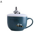 コーヒーカップ マグカップ 650ml 大きめ 蓋 スプーン付き セラミック 保温 耐熱 耐冷 電子レンジ?食洗器対応 洗いやすい 食器 ティーカップ コーヒー お茶 牛乳 誕生日 プレゼント 可愛い 立体 パンダ ブルー