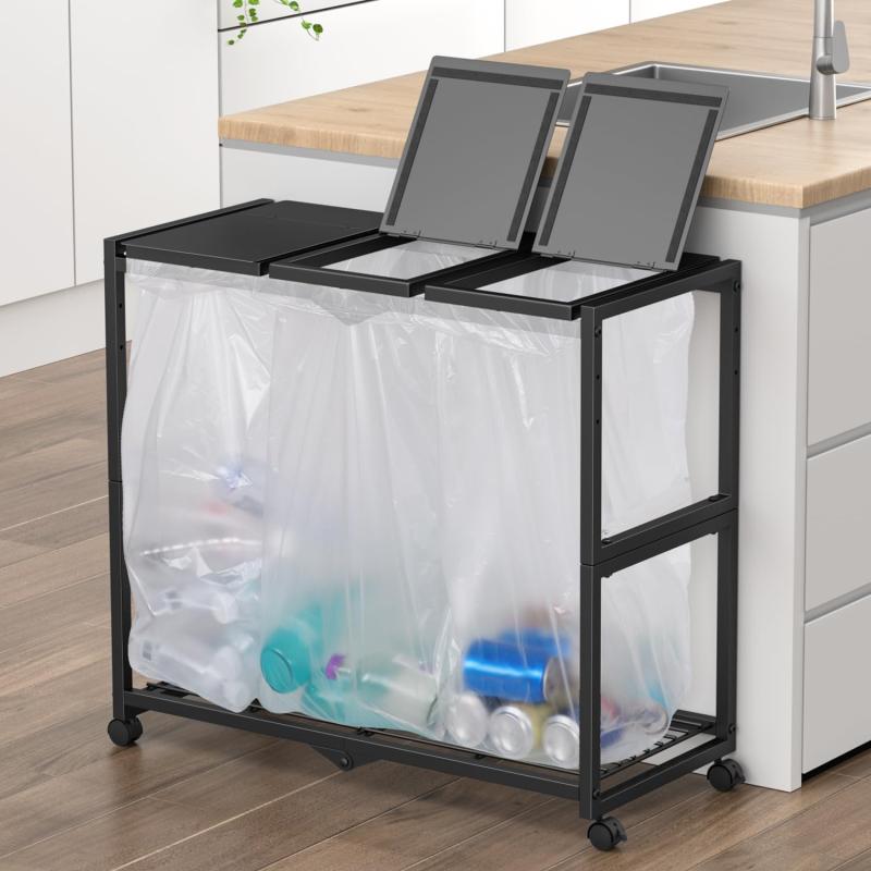 PRTONE ゴミ箱 分別 ゴミ袋ホルダー 2分別*45L ダストボックス キャスター付き 分別ゴミ箱 ふた付き おしゃれ スリム 2連 大容量 10L~55L袋対応 ゴミ袋 スタンド 縦開き キッチン 台所 リビング PRTONE ゴミ箱 分別 ゴミ袋ホルダー 2分別*45L ダストボックス キャスター付き 分別ゴミ箱 ふた付き おしゃれ スリム 2連 大容量 10L~55L袋対応 ゴミ袋 スタンド 縦開き キッチン 台所 リビング オフィス ゴミ箱ホルダー ダストワゴン