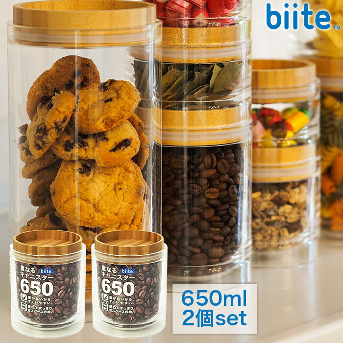 [2個セット] 重なるキャニスター 保存容器 650ml バンブー 円筒型 アクリル樹脂製 ガラスのようなキャニスター スタッキング 密封 保存容器 biite ビッテ