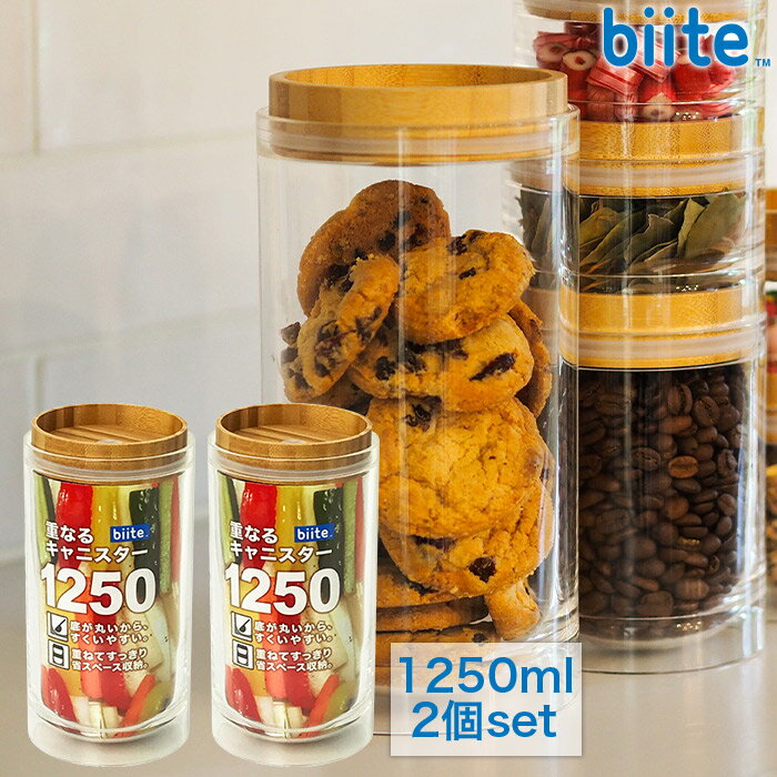 [2個セット] 重なるキャニスター 保存容器 1.25L バンブー 円筒型 アクリル樹脂製 ガラスのようなキャニスター スタッキング 密封 保存容器 biite ビッテ