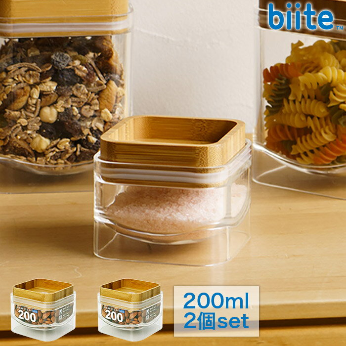 [2個セット] 重なるキャニスター 保存容器 200ml バンブー スクエア型 アクリル樹脂製 ガラスのようなキャニスター スタッキング 密封 保存容器 biite ビッテ