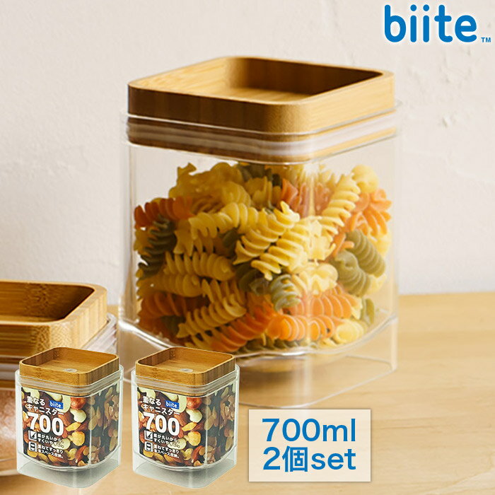 [2個セット] 重なるキャニスター 保存容器 700ml バンブー スクエア型 アクリル樹脂製 ガラスのようなキャニスター スタッキング 密封 保存容器 biite ビッテ