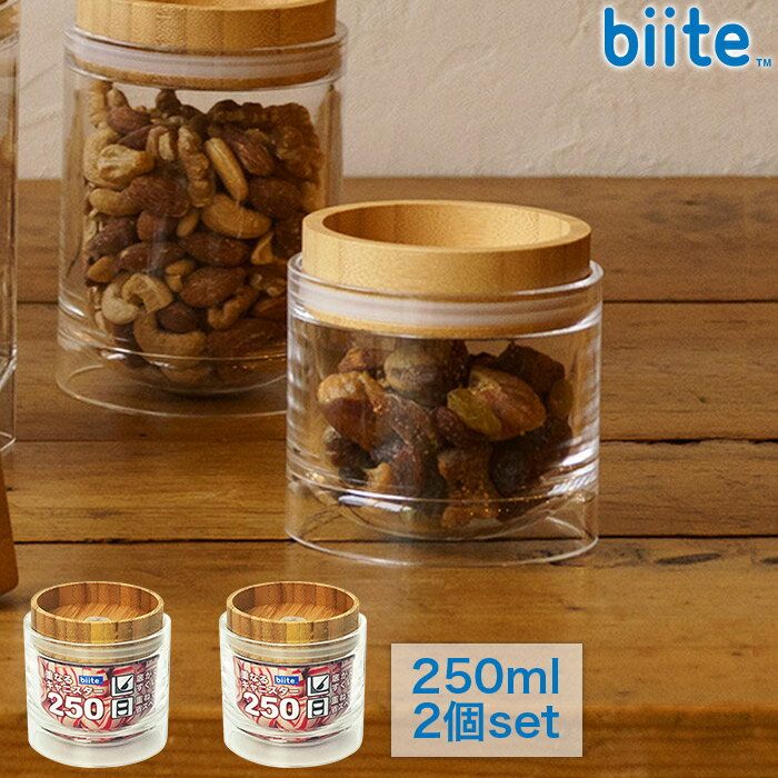 [2個セット] 重なるキャニスター 保存容器 250ml バンブー 円筒型 アクリル樹脂製 ガラスのようなキャニスター スタッキング 密封 保存容器 biite ビッテ