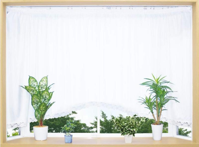 カーテン研究所ミラー効果プレーンカフェカーテン ホワイト 1枚入り小窓カーテン 目隠し 透けない ミラーレース UVカット 洗える 洗濯機対応 ベーシック レース シンプル