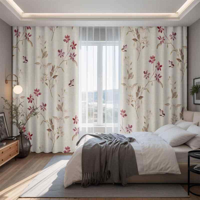 カーテン 遮光カーテン 花 葉 2枚セット 断熱 防寒 省エネ 防音 おしゃれ 洗える 寝室 ピンチプリーツ フック付き 間仕切り UVカット プライバシー保護 小鳥 枝 ベージュバック 幅150x丈178cm(2