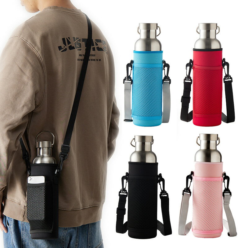 【今だけ★ポイント4倍】【送料無料】【メール便対応】ボトル カバー ポーチ ストラップ 水筒 携帯 ショルダー付 網ポケット ペットボトル 小物入れ 肩掛け 斜め掛け 500ml 600ml ペットボトルホルダー こども 象印タイガーサーモス等対応