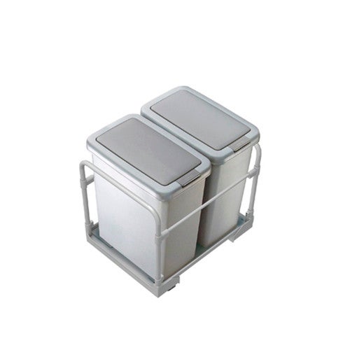 置き場所に困りがちなダストボックス2個をワゴンタイプに。オープンキャビネットに収納できます。