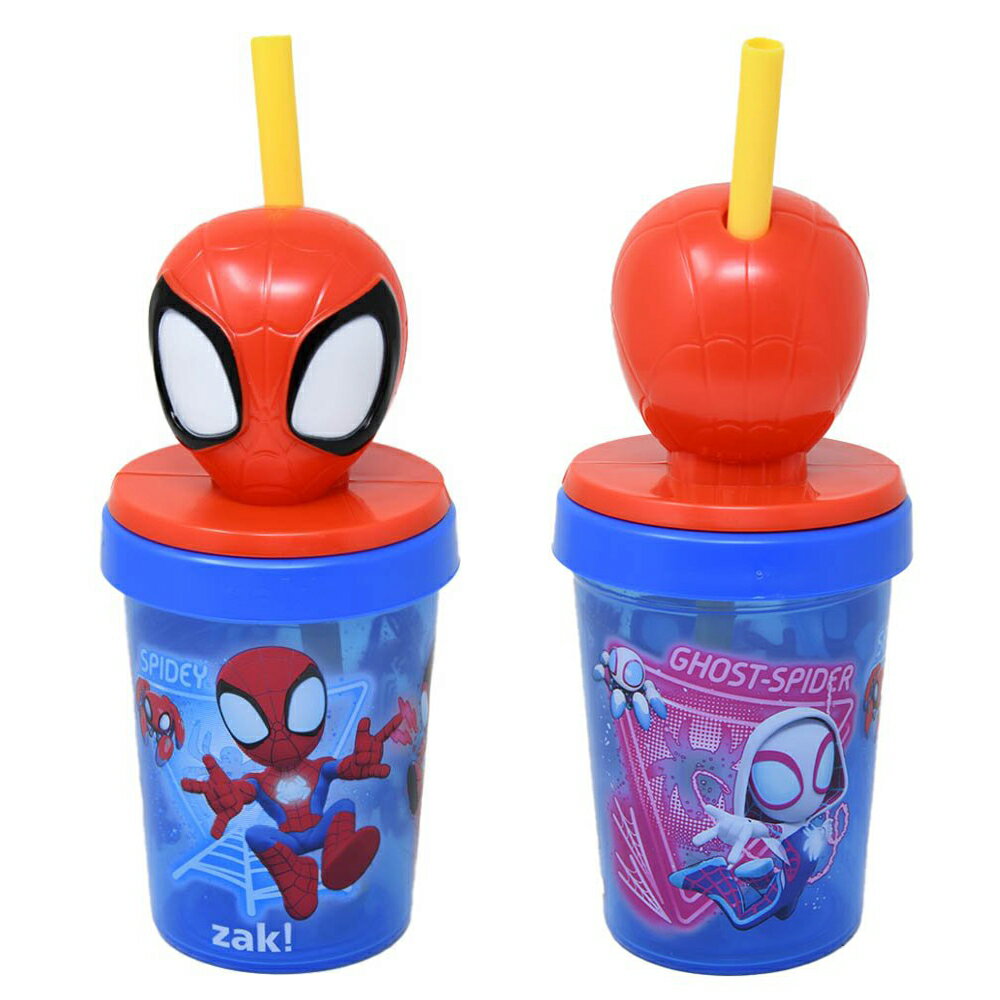 スパイディ フィギュア ストローカップ 13oz / 384mL 19888 スパイディとすごいなかまたち グッズ 食器 コップ カップ タンブラー ストロー ブルー 青 男の子 蓋つき キャラクター 雑貨 輸入品 スパイダーマン Spidey & Friends Molded Super Sipper with straw SFSS634