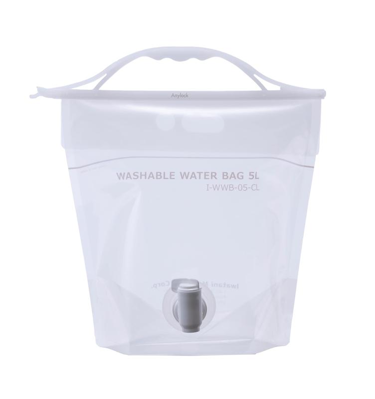 岩谷マテリアル 水タンク ウォッシャブル ウォーターバッグ 5L 透明 WWB-5CL 注ぎやすいコック付き キャンプ レジャー 防災 約37×36×16cm