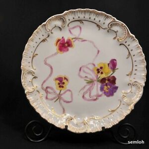 【送料無料】キッチン用品・食器・調理器具・陶器 リモージュアルアルフレッドランテルニエ充電器パープルパニーリボンボウゴールドLimoges AL Alfred Lanternier Charger Purple Panies Ribbon Bows w/Gold 1891-1914