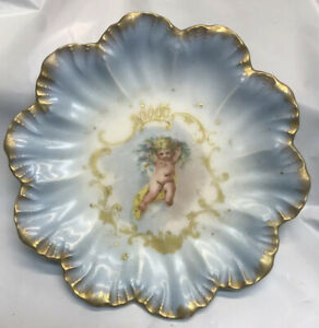 【送料無料】キッチン用品・食器・調理器具・陶器 アンティークリモージュフランスソーサーケルブフローラルシェイプアルフレッドランテルニエAntique LRL Limoges France 6” Saucer Cherub Floral Shape Alfred Lanternier c189