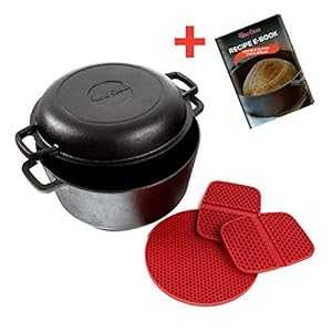 Uno Casa 鋳鉄製ダッチオーブン 蓋付き - 2 in1 シーズニング済み 5 クォート ポットと 1.6 クォート パン Uno Casa Cast Iron Dutch Oven with Lid - 2 in1 Pre-Seasoned 5 Quart Pot and 1.6 Quart Pan
