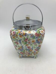 【送料無料】キッチン用品・食器・調理器具・陶器 スタッフォードシャーミッドウィンタービスケットバレルジャーフローラルメタルリッドStaffordshire MIDWINTER Biscuit Barrel Jar Floral Metal Lid 7 3/4
