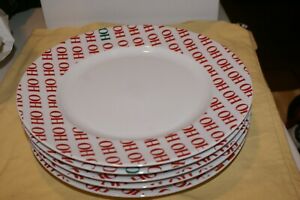 【送料無料】キッチン用品・食器・調理器具・陶器 クレートとバレルクリスマスディナープレートホーホーホーワンマイナーリムチップCrate and Barrel 6 Christmas dinner plates Ho Ho Ho 10D (ONE MINOR RIM CHIP)