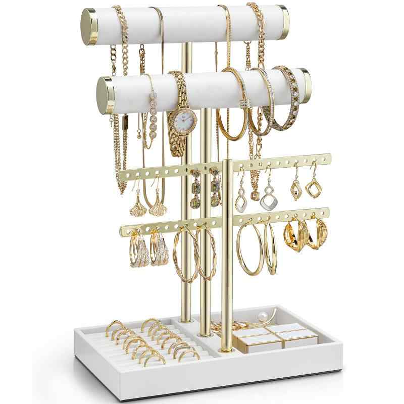 Lolalet ジュエリースタンド ネックレスホルダー 金属製 アクセサリー整理 収納 ギフト 女性用 ブレスレットスタンド ディスプレイ 妻へのプレゼント すっきり収納 倒れ防止 インテリア小物