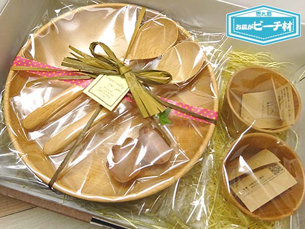 ギフト対応★マーク(上記)について詳細★ 商品説明 カレー好きのためのカレー好きによるセット!?です。 直径約230ミリの大きな木の深皿なので、たっぷりカレーを入れる事ができます。大きめのスプーンでモリモリ食べれますよ!!葉形のシンプルな箸置きは、スプーンレストとして使用して下さいね。 木の食器なら、ナチュラルでカフェ気分が味わえます♪また温かみがあり食卓をほっこりさせてくれます。雰囲気を演出するにはバッチリです! お祝いや贈物に最適です♪ご結婚祝いにも、もちろんおすすめです! 可愛くラッピングして送らせて頂きます。 ギフトセット内容 メインのお皿が「ビーチ材のセット」と「パイン材のセット」の2タイプがあります。 ★メインのお皿がビーチ材のセット★ ■MUTE ラウンドディッシュ-L×2枚 ・サイズ(ミリ):直径約230x高さ40 ・素材:ビーチ ■ストレートコップS×2個 ・サイズ(ミリ):直径約85x高さ65 ・素材:ビーチ ■MUTE スプーン(L)×2本 ・サイズ(ミリ):長さ210 ・素材:ビーチ ※スプーンはどちらのセットもビーチ材です。 ■葉形はしおき×2個 ・サイズ(ミリ):横幅41x縦幅35 ・素材:サオ ※箸置きはどちらのセットもサオ材です。 ★メインのお皿がパイン材のセット★ ■MUTE ラウンドディッシュ-L×2枚 ・サイズ(ミリ):直径約230x高さ40 ・素材:パイン ■ストレートコップS×2個 ・サイズ(ミリ):直径約85x高さ65 ・素材:パイン ■MUTE スプーン(L)×2本 ・サイズ(ミリ):長さ210 ・素材:ビーチ ※スプーンはどちらのセットもビーチ材です。 ■葉形はしおき×2個 ・サイズ(ミリ):横幅41x縦幅35 ・素材:サオ ※箸置きはどちらのセットもサオ材です。 <共通仕様> ・塗装:ウレタン塗装 ・生産国:インドネシア共和国 ・製造元:有限会社藤芸 ■ケース:無地ブラウンボックス-L1 ・サイズ(ミリ):横幅340×縦幅250×高さ120 ・メーカー:株式会社ヘッズ ■送料込み ■ギフトセット企画・ラッピング:Y&Tナガタ工房 樹種について <ビーチ材> ※色味は淡い橙色がかった乳白色で、木目はきめ細かく、小さな斑点が全体に入っているのが特徴です。 <パイン材> ※東南アジアに分布する松を原料としており、広葉樹のような明るめの色合いが特徴です。 <サオ材> ※インドネシアの果物の木を原料としており、色味はベージュからダークブラウンまでのグラデーションがあります。 木目が大変美しいのが特徴です。 ギフトセットについて 【商品】+【送料】+【ギフト用箱】+【ギフト用ラッピング】が全てセット!! 「メッセージカード」や「のし」も、ご希望の場合、全て無料でサービス提供させて頂きます!(フリーメッセージやのしへの連名記入等、細かなご要望にも対応しております!) かわいいラッピングなので、喜ばれること間違いなしです♪ ギフトセットのラッピングについて ラッピング方法は、全9パターンの中からお選びいただけます!(無料サービス) ギフトセットのみに利用できる、フラワーラッピング等、お好きなラッピング方法で可愛くラッピングして送らせて頂きます!! 大切な方のご結婚のお祝いや贈物に最適です♪ 無料ラッピング「1」…おまかせ、「2」…包装紙・のし指定」 【1.おまかせ】 包装紙+リボンが基本となっております。 包装紙は「おまかせ」でも、「のし」がけをご希望で、表書きの指定等がある場合は、ご注文の際の備考欄で選択することができます。 【2.包装紙・のし指定】 細かな指定をされたい場合は、「2.包装紙・のし指定」を選択の上、 ラッピング・のし・メッセージカード無料サービス」のページで、ご指定下さい! ■備考欄について 各種選択項目等にないご要望がある場合や、ページ説明で分かりにくい所等がありましたら、備考欄にご記入頂き、具体的にご指示をお願いします。 備考欄は、ご購入手続きの「STEP2(確認)」ページ下方に表示されております。 無料ラッピング「3」…サムシングブルー 結婚祝いのギフトセットには、花嫁が幸せになるおまじない「サムシングブルーラッピング(無料)」をお勧めしております。ご利用の場合は、選択項目で「3.サムシングブルー」をお選びください。 【サムシングブルーとは】 欧米の習慣で、「新しいもの・古いもの・借りたもの・青いもの」を身に着けた花嫁は、幸せになれるとされています。 純潔を表すサムシング・ブルーで、可愛くラッピングをして送らせて頂きます!! 無料ラッピング「4」〜「9」 「4」〜「9」は、全て包装紙+リボンが基本となっております。「のし」をかけられたい場合は、選択できません。 ※包装紙・リボンは当店指定のものとなります(写真イメージ)。また、包装紙等の在庫状況によってイメージに近い素材に変更となる場合がございます。 【4.ロマンティックピンク】 包装紙やリボンをピンク色で統一してロマンチックにラッピングします。誕生日プレゼント、ご出産、ご結婚、ちょっとしたお礼のお品にもオススメ♪ 感謝の想いを届けたい人にどうぞ〜 【5.ハッピーイエロー】 カラフルでポップなお花畑のイメ