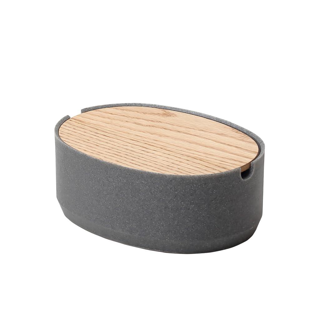 ideaco (イデアコ) 小物 卓上 蓋付き 収納 幅21.5✕奥行15.5✕高さ8cm Oval Box M Low stone sand gray/オーバルボックス Mサイズ 低 ストーンサンドグレー