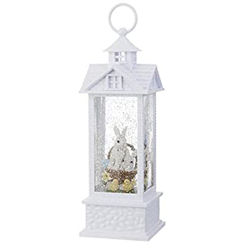 【中古】【輸入品・未使用】RAZ Imports スプリングウォーターランタン 11.75インチ バスケットに入ったウサギ ライト付き ウォーター ガゼボ