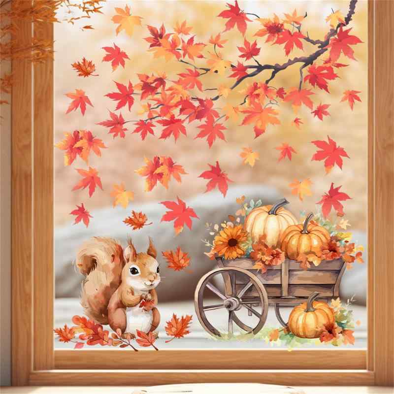 Hikosiya 静電ステッカー 窓ステッカー 植物 葉 ピンク 花 藤 桜 鳥 紅葉 黄葉 葉っぱ 落ち葉 リス 窓 ドア 戸棚 浴室 ガラス かわいい 飾り 両面印刷 水で貼る 貼り直し可能 静電気シール イン