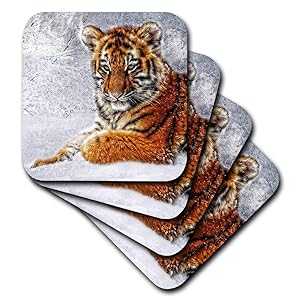 3dRose cst_173002_3 雪の中の赤ちゃんトラの子 4 枚の写真のデジタル構成 - セラミック タイル コースター、4 個セット 3dRose cst_173002_3 Baby Tiger Cub in The Snow Digital Composition of Four Photographs-Ceramic Tile Coasters, Set o