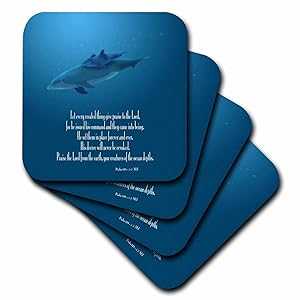 3dRose CST_36108_1 アクア色の海で泳ぐイルカの母親と赤ちゃん 聖書詩篇 148 V 5-7 ソフトコースター付き (4 個セット) 3dRose CST_36108_1 Mother & Baby Dolphin Swimming in The Aqua Colored Ocean with The Bible Verse Psalm 148 V 5