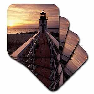 3dRose CST_91056_3 マサチューセッツ州、ナンタケット島、ブラント ポイント灯台-Us22 Wbi0783-ウォルター ビビコウ-セラミック タイル コースター、4 枚セット 3dRose CST_91056_3 Massachusetts, Nantucket, Brant Point Lighthouse-Us22 Wbi0783-Walte