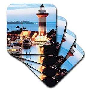 3dRose CST_61725_1 夕暮れ時のヒルトンヘッドアイランドのハーバータウン灯台 - ソフトコースター、4 個セット 3dRose CST_61725_1 Harbour Town Lighthouse at Hilton Head Island at Dusk-Soft Coasters, Set of 4