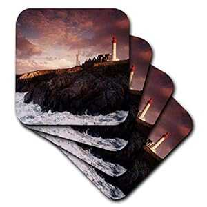 3dRose CST_210264_2 France, Brittany, Finistere, Saint-Mathieu Lighthouse at Dawn Soft Coasters, Set of 8
