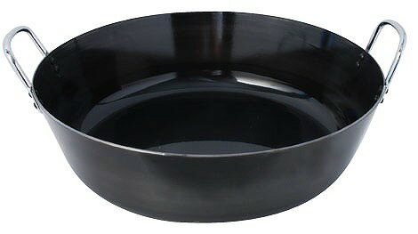 【商品詳細】呼び寸法:39cm重量:4262g底の厚さ:3.2mmサイズ(約):直径395mm(取って含む長さ:437mm)×高さ104mm(取って含む高さ:150mm)使い始めの本体の仕込み:透明シリコン樹脂加工がしてあります。使い始めに本体の仕込をする場合は、次の手順で行ってください。1鍋全体を煙が出なくなるまで熱してください。(煙が見えにくいことがありますが、表面が青色になれば十分です。)2鍋全体が少し冷えたら、金属タワシを用いて塗膜を取り除いてください。3鍋の内側に油をたっぷり塗り再び熱し油をしみこませて仕上げます。 ※本体に塗布している透明シリコン樹脂塗膜は、あくまでも使用開始になるまでの錆止めの目的ですので、そのままご使用になっても衛生上無害ですのでご安心ください。炒め物調理のコツ:十分に鍋をあたためておいてから、適量の油をひき、まんべんなく馴染ませます。鍋も油も熱くなり、かすかに煙が出たら材料を入れます。最初の火加減は強火にし、手早く調理を進めます。ご使用後のお手入れ:ご使用後は、あたたかいうちにお湯をかけ、ササラなどですぐに表面の汚れを洗い落とし、乾いた布で水気を拭き取り、食用油を薄く塗ってから収納してください。せっかく表面にできた油脂を切り取らないようにしてください。長く使い込んだものは食器用洗剤につけてもかまいません。注意:極端な空だきは避けてください。とってに達するほど炎を長くして使用しないでください。本体の中に長時間料理を保存すると、鉄製のため、錆が生じますのですぐに料理を他の容器へ移してください。錆がでた場合には、きれいに落してからご使用ください。使い始めのうちは、アクの強い材料(ごぼう、れんこん等)のアク抜きを十分にしない場合、調理中に材料が変色することがあります。本体、側面、裏面などにあるキズは表面の塗装の一部が取れただけで使用するには問題ありません。天ぷら、フライなどを揚げる場合は、油をカシメ鋲よりも上に入れないでください。本体:鉄(透明シリコン樹脂塗膜加工)、ハンドル:鉄(アクリル塗装)日本製【送料について】北海道、沖縄、離島は送料を頂きます。