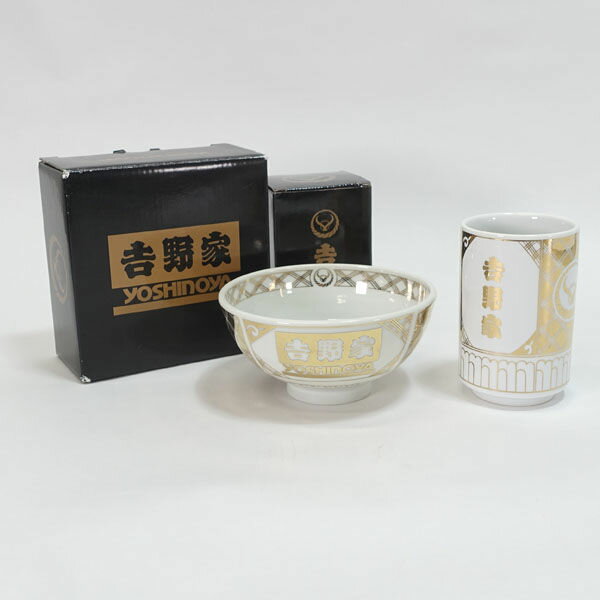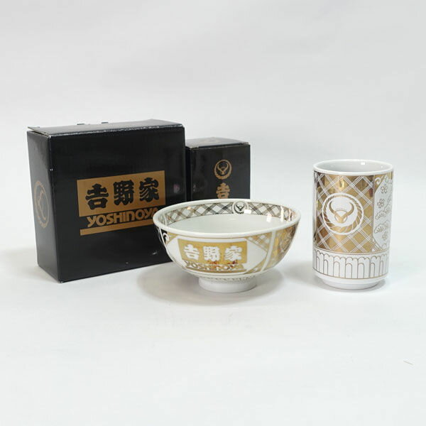 吉野家 ◆【和食器】吉野家/金の飯碗&湯呑 ギフト【未使用】 【代引不可】