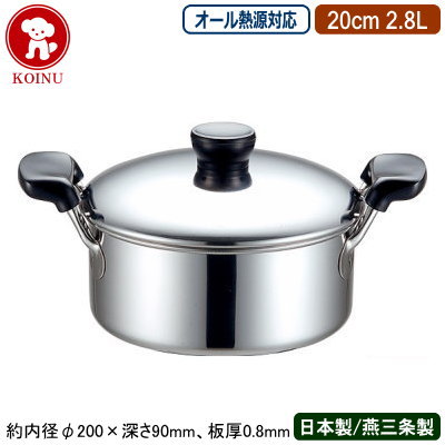 【ソースパン 日本製 燕三条 ステンレス IH対応】18-0ステンレス製 ソースポット 20cm 2.8L【業務用/家庭用/IH 対応/IH電磁調理器 対応/オール熱源対応/ミルクパン/ソース作り/下ごしらえに/牛乳の温め/離乳食作り/両手鍋/プロ/厨房用品/お菓子作り道具/仔犬印】