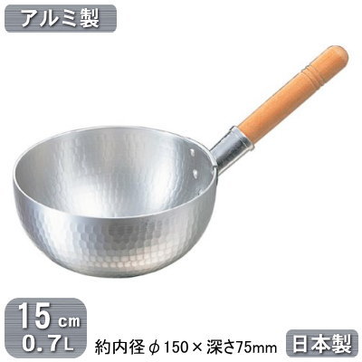 【丸底鍋 アルミ製 日本製】アルミ 片手 ボーズ鍋 15cm 0.7L【坊主鍋/業務用/家庭用/業務用鍋/プロ用/厨房道具/調理器具/厨房用品/アルミニウム/耐久性/熱伝導率/ガスコンロ専用/ガス火専用/ジャム/飴/餡子/あんこ/餡/キャラメル/カスタードクリーム/お菓子作りに】