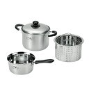 世界にも広く知られる新潟県燕市の技術を活かしたキッチンウェア! ■材質 本体:19-0ステンレス(板厚1.2mm) 蓋:ステンレス鋼(板厚0.7mm) カツラ:18-8ステンレス(板厚0.5mm) 蓋ツマミ:フェノール樹脂 台座:66ナイロン ハンドル・取っ手:フェノール樹脂・ステンレス鋼 着脱式ハンドル:フェノール樹脂 ■サイズ 蓋・取っ手含む:約20×40×19.8cm(本体高さ:約14.7cm)[約3.8L]ストレーナー×1 ■重量 約1310g ■生産国 日本
