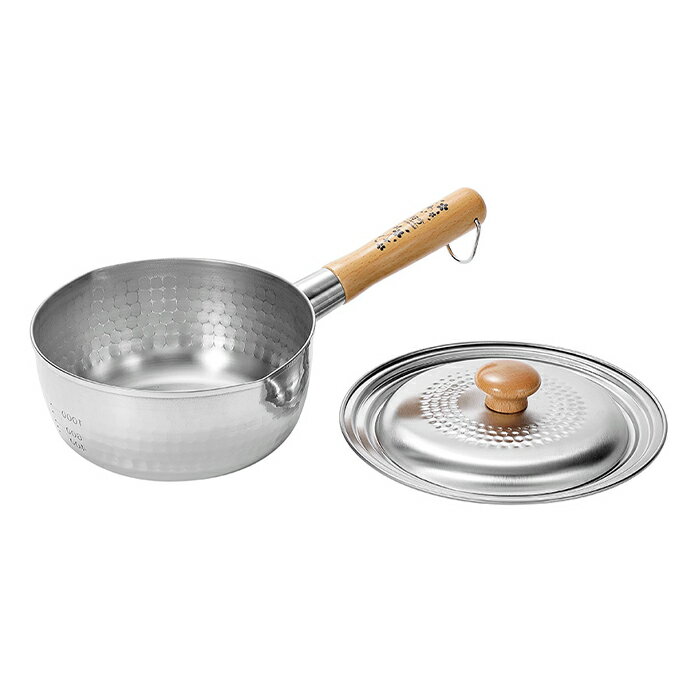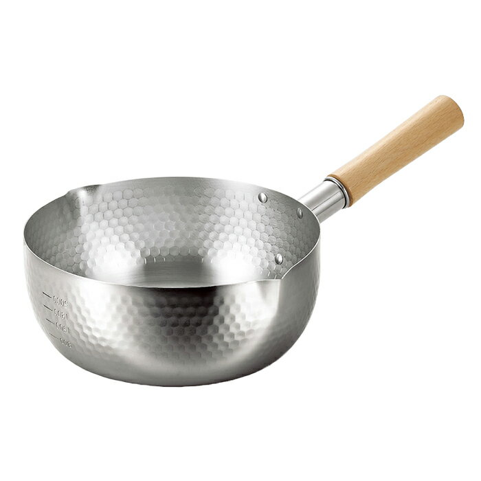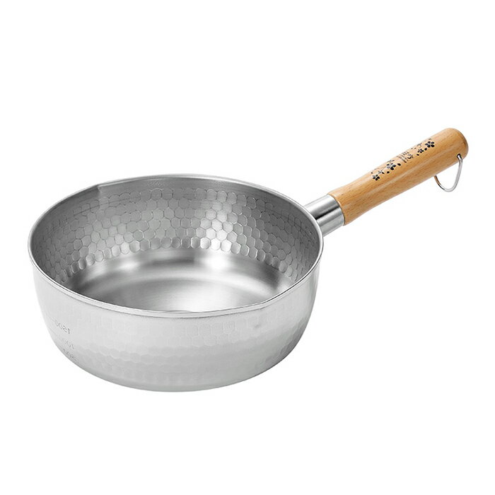 商品詳細 ----------------- サイズ(ハンドル含む):約190×340×120mm(本体高さ:80mm) 容量:約1.7L 材質: [本体] 430ステンレス鋼(板厚1.0mm) [持ち手] 天然木 [持ち手金具] 304ステンレス鋼 重量:約530g 生産国:日本 対応熱源:ガス火、IH100V・IH200V電磁調理器具 ----------------- [商品の説明] 金属加工の街、新潟県燕市産のステンレス雪平鍋。 天然木の持ち手は安定感があり、外観は美しい槌目仕上げ。 ガス火、IH100V・IH200V調理器対応で、便利な目盛り付きです。----------------- 商品詳細 ----------------- サイズ(ハンドル含む):約190×340×120mm(本体高さ:80mm) 容量:約1.7L 材質: [本体] 430ステンレス鋼(板厚1.0mm) [持ち手] 天然木 [持ち手金具] 304ステンレス鋼 重量:約530g 生産国:日本 対応熱源:ガス火、IH100V・IH200V電磁調理器具 ----------------- [商品の説明] 金属加工の街、新潟県燕市産のステンレス雪平鍋。 天然木の持ち手は安定感があり、外観は美しい槌目仕上げ。 ガス火、IH100V・IH200V調理器対応で、便利な目盛り付きです。