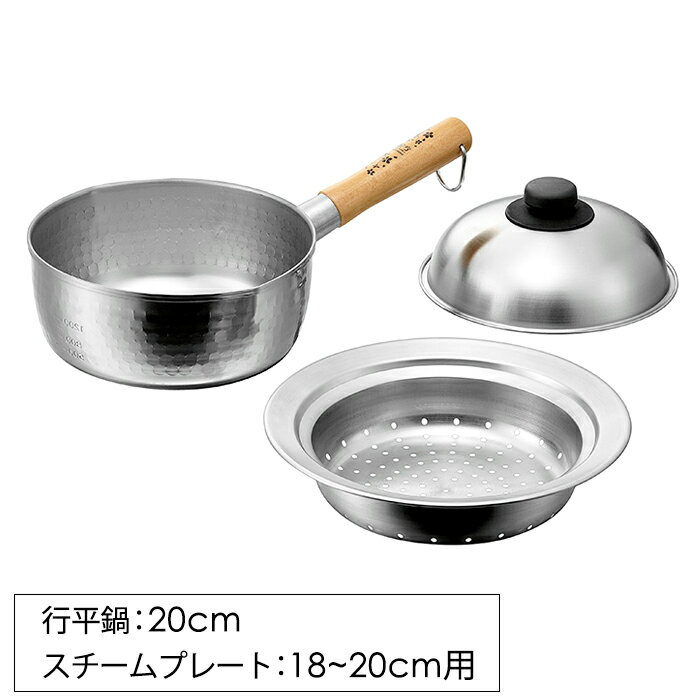 ----------------- 商品詳細 ----------------- サイズ・重量・容量:(約) [雪平鍋(ハンドル含む)] 213×360×120mm(本体高さ85mm)・580g・2.5L [スチームプレート] Φ240×H124mm・380g 材質: [雪平鍋] 21-0ステンレス鋼(底厚0.8mm)、天然木 [スチームプレート] 18-8ステンレス鋼(プレート)、18-0ステンレス鋼(蓋) 生産国:日本 ※鍋はIH対応 ----------------- [商品の説明] 金属加工の町、新潟県燕市産のゆきひら鍋20cm(桜吟)と鍋にのせるスチームプレート。 ゆきひら鍋にスチームプレートを乗せれば、蒸し器としても使えます。 スチームプレートは、お手持ちの同サイズの鍋にもご使用できます。----------------- 商品詳細 ----------------- サイズ・重量・容量:(約) [雪平鍋(ハンドル含む)] 213×360×120mm(本体高さ85mm)・580g・2.5L [スチームプレート] Φ240×H124mm・380g 材質: [雪平鍋] 21-0ステンレス鋼(底厚0.8mm)、天然木 [スチームプレート] 18-8ステンレス鋼(プレート)、18-0ステンレス鋼(蓋) 生産国:日本 ※鍋はIH対応 ----------------- [商品の説明] 金属加工の町、新潟県燕市産のゆきひら鍋20cm(桜吟)と鍋にのせるスチームプレート。 ゆきひら鍋にスチームプレートを乗せれば、蒸し器としても使えます。 スチームプレートは、お手持ちの同サイズの鍋にもご使用できます。