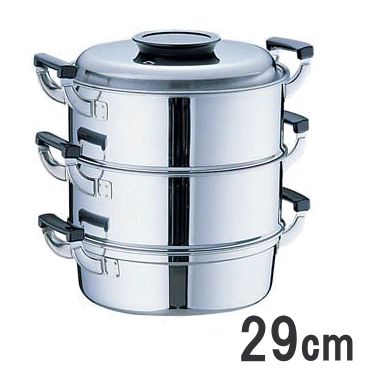 ◎≪IH・ガス火対応≫桃印 18-0ステン 丸型蒸し器 3段29cm 2.4升用 一重丸蒸し器 電磁調理器 120サイズ 025000530,549-11_ET