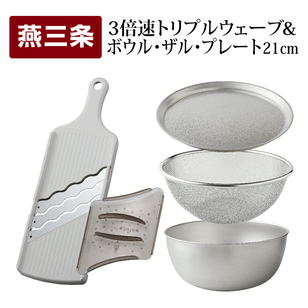 【ふるさと納税】トリプルウェーブ 21cmボウルザルプレートセット 燕三条製 アーネスト キッチンツール4点セット ボウル ザル プレート スライサー 新銀河 キッチン用品 調理器具 調理用品 新生活 一人暮らし 仕送り【012S085】